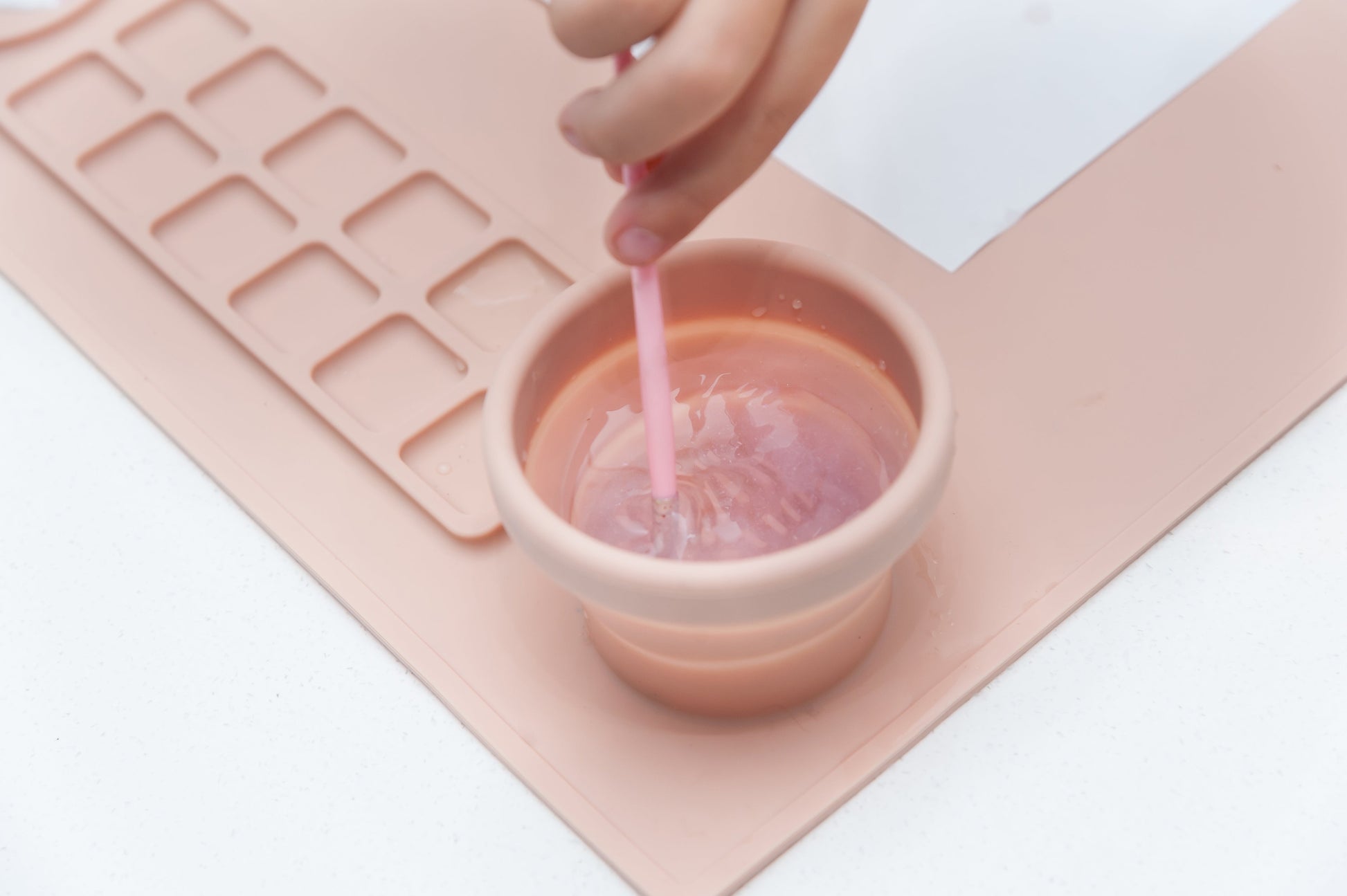 Cleaning Directions: The craft mat is made out of 100% food grade silicone and is dishwasher safe, however, we highly recommend hand washing your craft mat to avoid mixing chemicals with your kitchen items. Handwash with warm, soapy water (use a non-abrasive brush) and clean after each use for long lasting results. To dry, either leave to air dry or clean with a lint free towel.